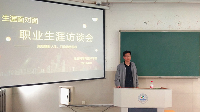 规划精彩人生,打造锦绣前程。为增加学生对生物制药就业方面的了解,4月11日下午,williamhill威廉希尔在10J306举办职业生涯访谈会活动,邀请邦恩泰生物集团研发总裁刘磊教授来校宣讲。活动由学院辅导员阮斌主持,部分本科学生参加了此次活动。