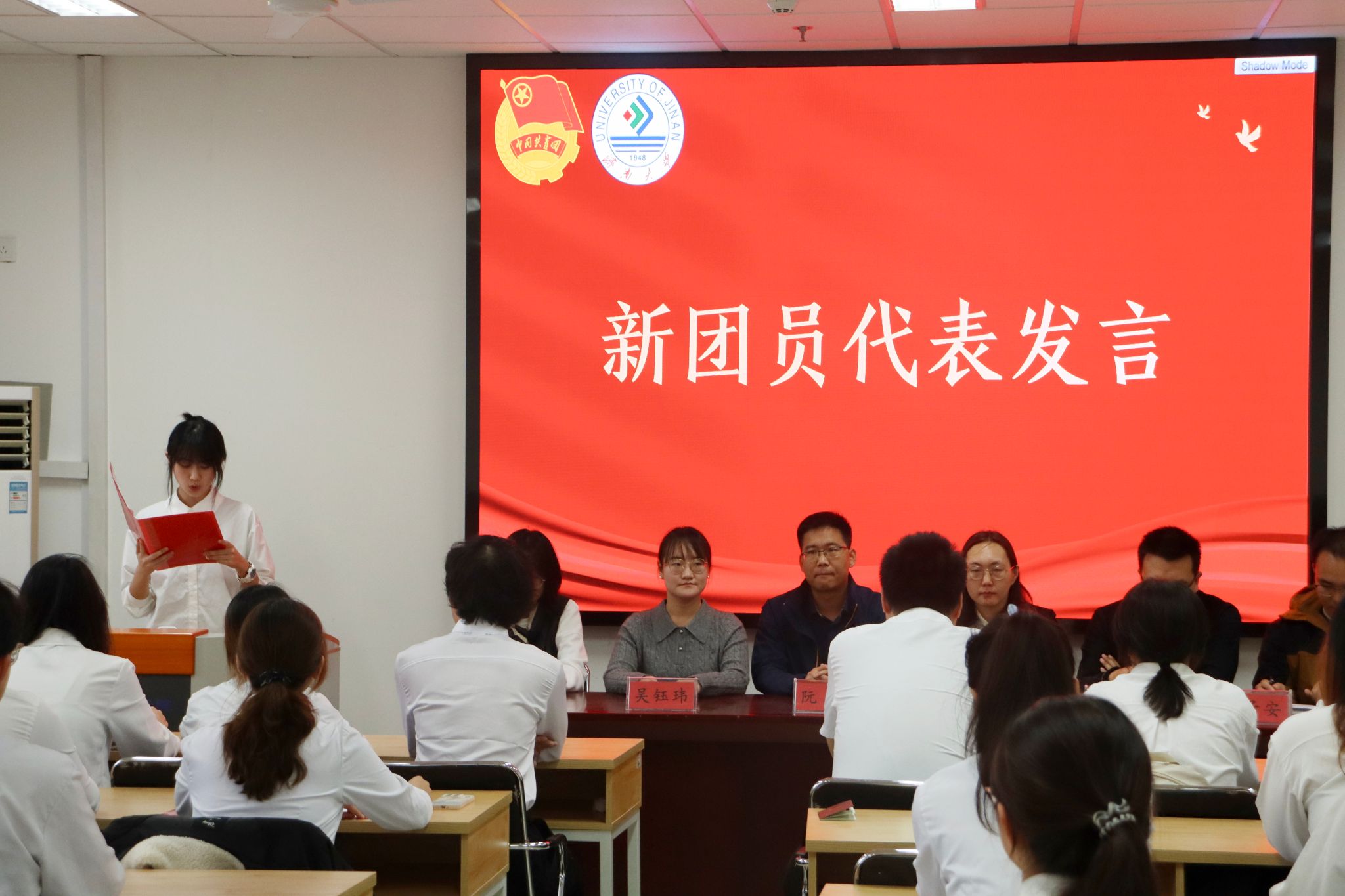 随后,学生会分管主席赵一霏作为领誓人,带领新发展团员进行宣誓,铿锵有力的誓词表达着他们对共青团的忠诚,对祖国和人民的热爱。