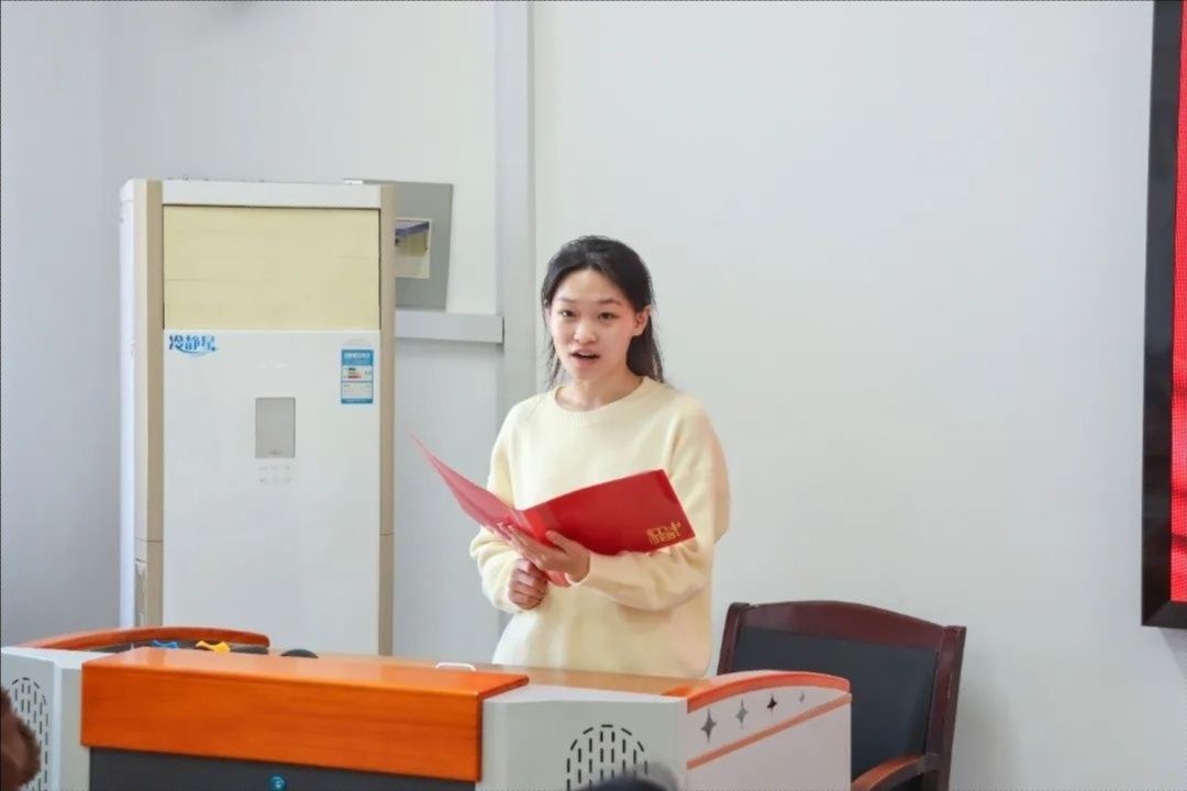 随后,新任职团干部代表发言,表达了对团组织工作和为同学们服务的热情,并表示在未来工作中会认真听取培训内容,做好笔记,提高自己的业务能力,以更加昂扬的斗志和扎实的工作作风,为同学们创造更加良好的学习和生活环境。