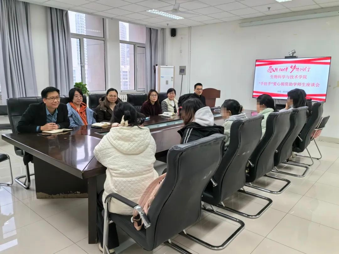 为了解家庭经济困难学生思想、学习和生活状况,提升资助育人工作实效,12月12日,williamhill威廉希尔举行“手拉手”爱心捐资助学师生座谈会。学院工会主席杨倩、教师及辅导员代表、受助学生代表参加座谈会。座谈会由学院学生工作办公室主任阮斌主持。