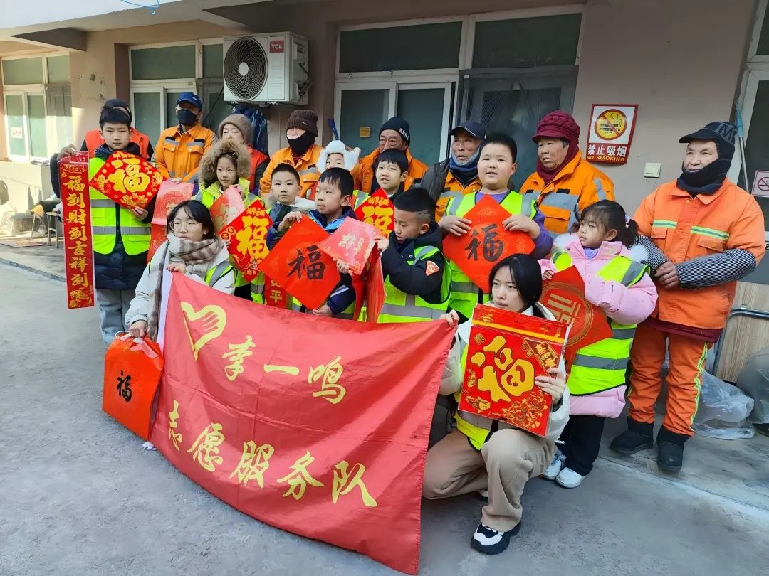 实践感悟:活动现场,大家都用心的准备了各式各样的对联和福字。当环卫工人们接过红彤彤的福字和对联时,脸上都洋溢着幸福的笑容。他们纷纷表示这份礼物真是既暖心又实用,为即将到来的春节增添了浓浓的年味。此次活动不仅为环卫工人送去了新春祝福,更传递了社会对他们的尊重和关爱。环卫工人是城市的美容师,他们用辛勤的劳动维护了城市的整洁美丽。