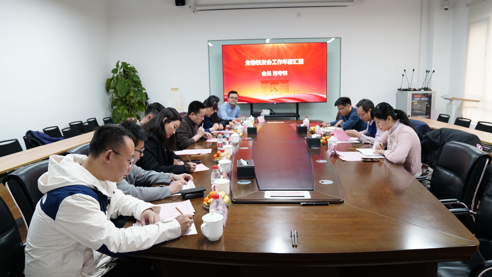 会长陈守林作工作汇报,全面回顾了校友会成立以来在校友联络、资源共享、服务支持等方面开展的工作与取得的成效,同时客观分析了当前校友会工作中存在的不足。结合学院发展规划与校友需求,会长明确了校友会未来的活动计划,提出将进一步深化校友联络、升级平台功能、强化服务保障,聚焦生物医药等大健康相关领域,搭建校友间、校友与学院间的合作平台,深化校企协同合作,推动校友资源与学院发展深度融合,切实发挥校友会的桥梁纽带作用,凝聚全体校友力量,共同为学院发展赋能助力。