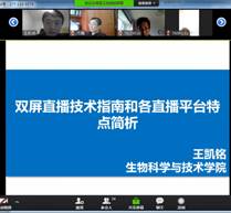随后,制药工程系副主任王凯铭老师从两个方面分享了“双屏直播技术指南和各直播平台特点简析”。王老师对双屏直播硬件、软件设备设置以及上课时的操作进行了详细介绍,阐述了双屏直播技术的优势、相关课件制作方法、单屏分区解决方案。同时,王老师对基于双屏幕教学的课堂派、腾讯会议/瞩目/ZOOM、钉钉等多个平台进行介绍,分析其优缺点,让老师们对双屏+直播的在线授课方式有了更深入的了解。