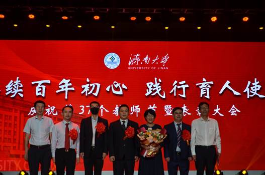 在表彰仪式上,我院秦晓春副院长作为教师代表在学校教师节专题宣传片上进行了发言。学校对从事教育工作者满30年的教师和2018-2020年期间获得教学科研工作奖励的老师进行表彰。学校为王聚生、朱帮全、王元秀、李殿香4位从事教育工作满30年的教师颁发了证书和奖杯。