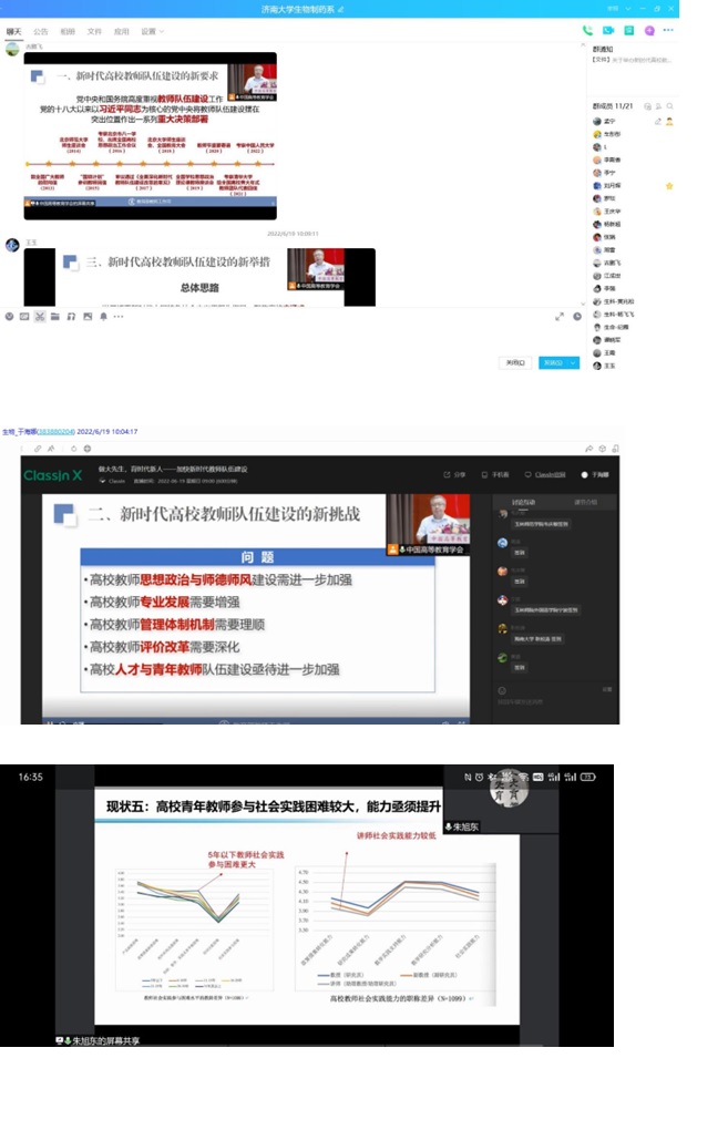 2022619日上午,学院组织全体教师通过线上方式参加“新时代教师队伍高质量发展研讨会”第一讲“做大先生,育时代新人——加快新时代教师队伍建设”,老师们认真听取专家报告,各位专家从不同角度诠释了如何从一位“好老师”成长为一名有品格、品行、品味的大先生,与会教师受益匪浅。