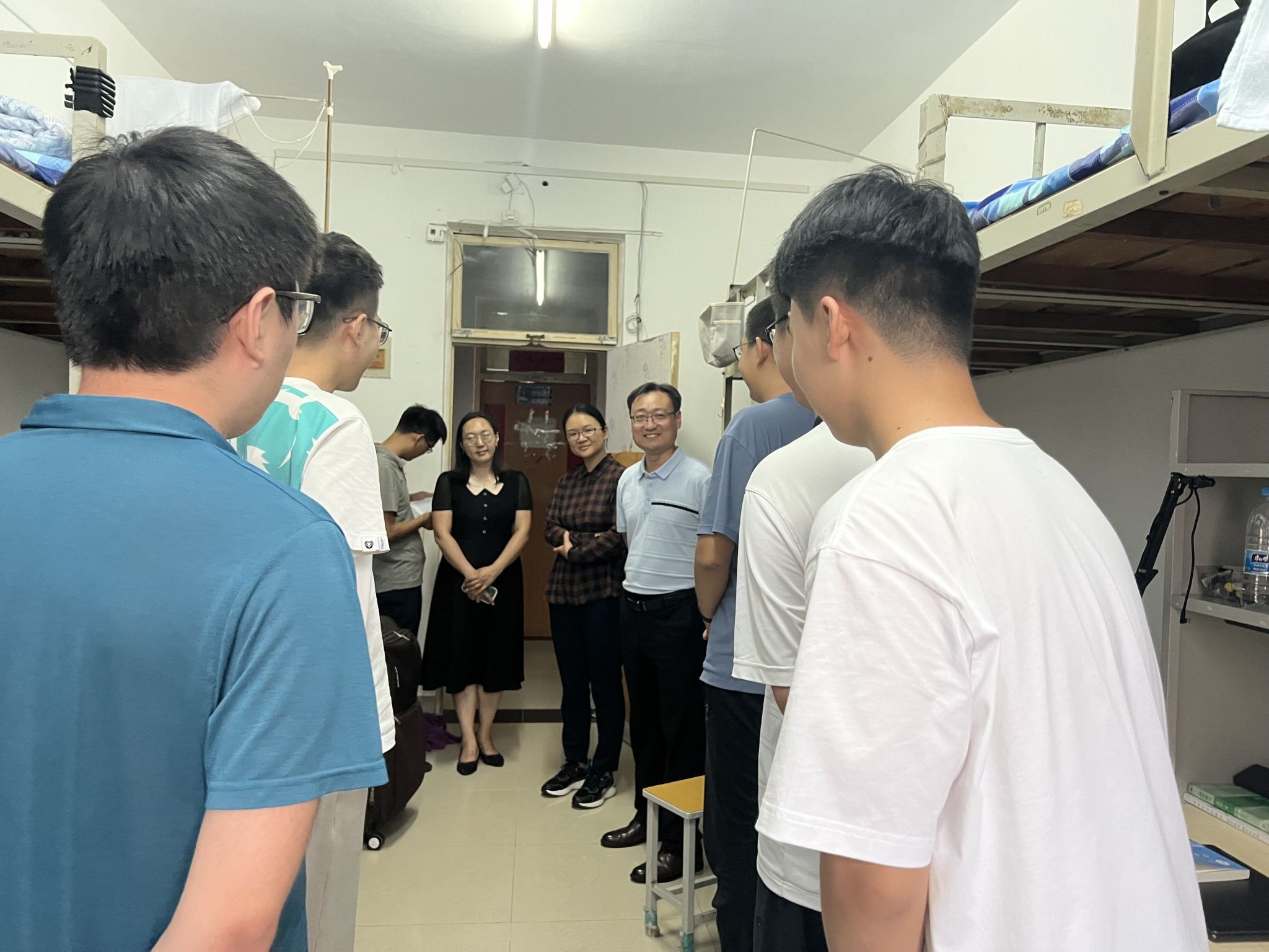 9月6日,williamhill威廉希尔迎来了400余名2023级新同学。为深入了解新生情况,帮助学生尽快适应新环境,当天下午,学院党委书记史国普,院长秦晓春,党委副书记、副院长武芳,学办主任阮斌,辅导员李立衡逐一走访宿舍,为学生送去亲切的问候与热切的关爱。