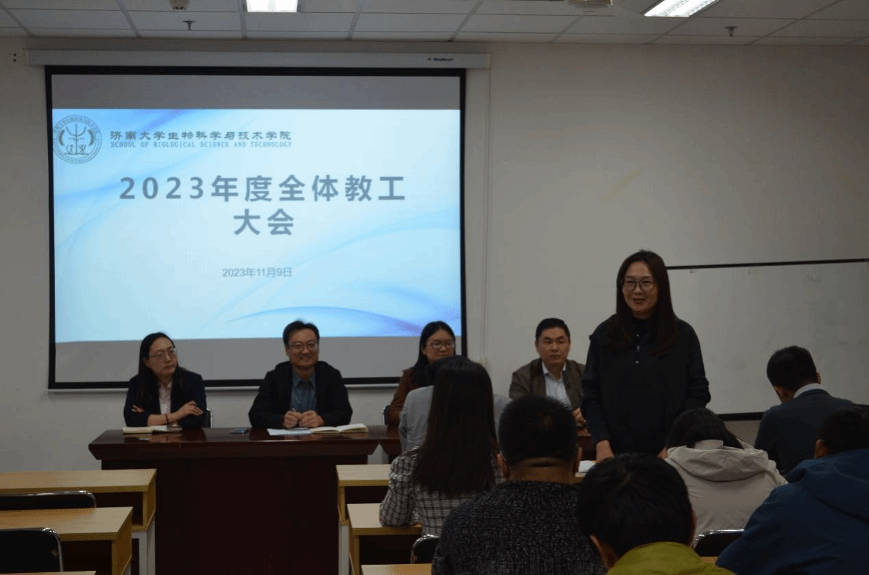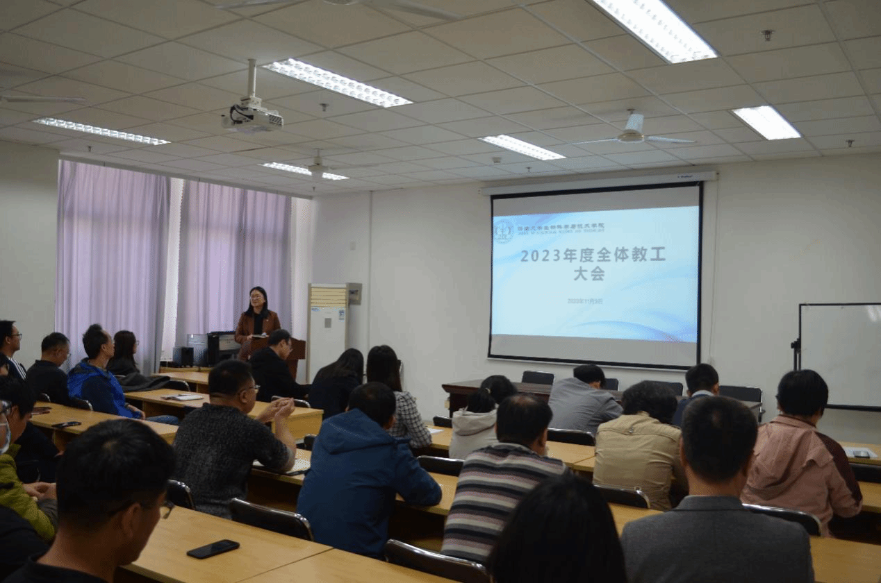 2023年11月9日下午,williamhill威廉希尔在特教楼B1010教室召开全院教职工大会,学院党委书记史国普,院长秦晓春,党委副书记、副院长武芳,副院长李强以及全院教职工参加。本次会议由史国普主持。