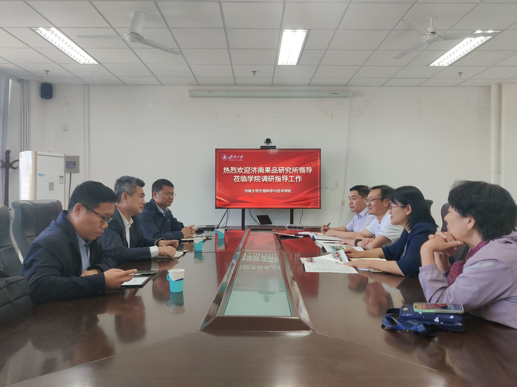 2024年10月11日上午,济南果品研究所所长赵岩一行3人来院座谈交流,学院党委书记史国普、院长秦晓春、副院长李强、教师代表王元秀出席座谈会。
